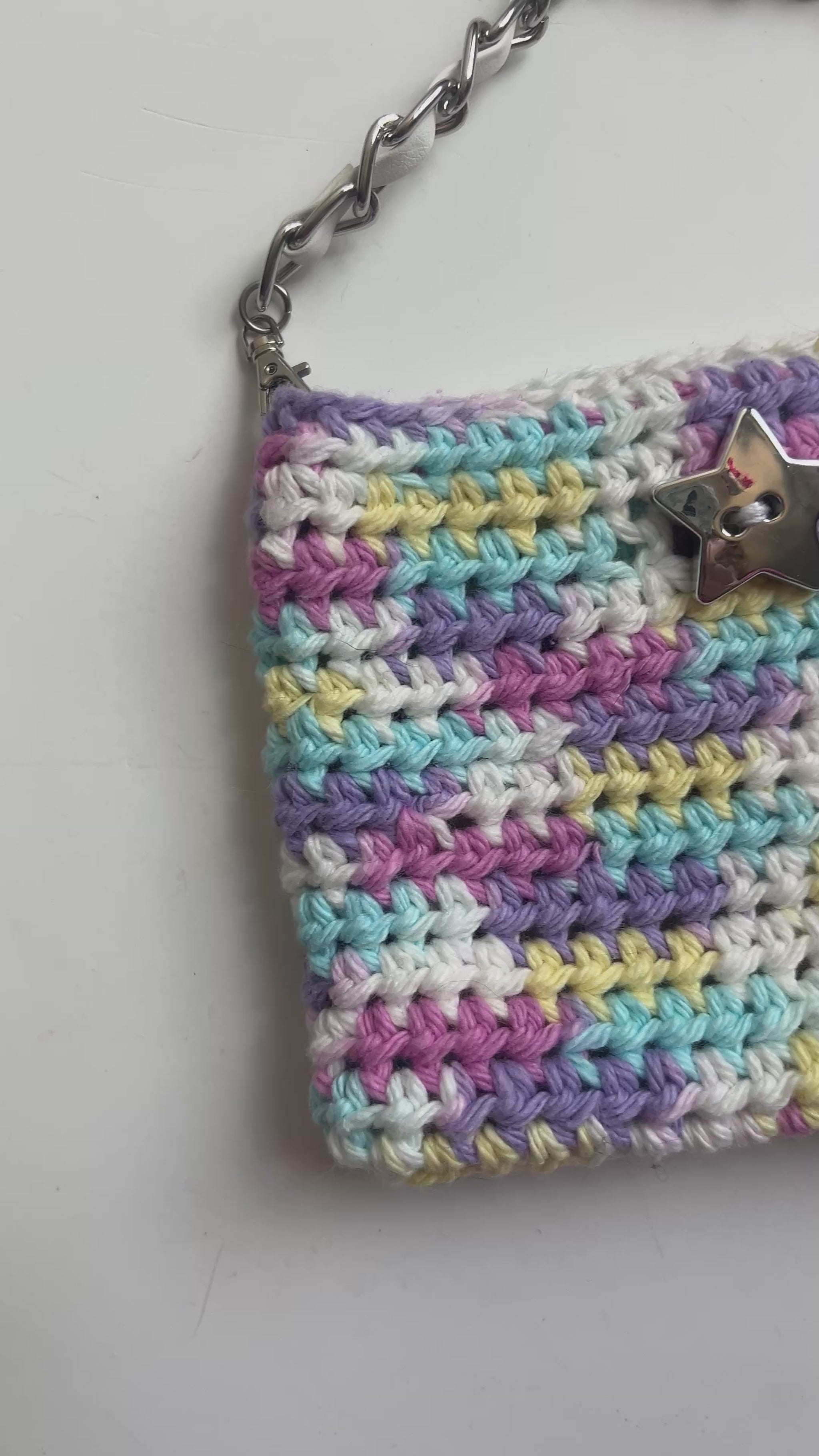 A mini crochet wallet made with 100% cotton yarn and an adorable chain to carry the wallet.