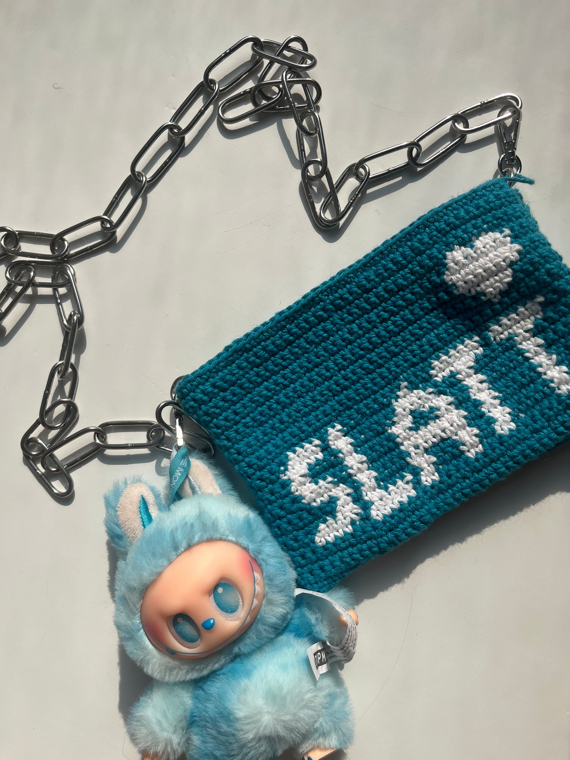 SLATT mini purse made with 100% cotton with a SLATT and heart design